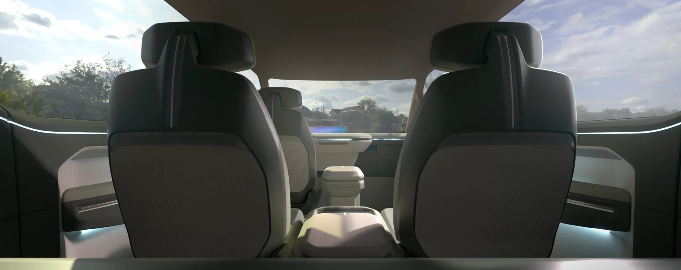 The third-row space is designed as a shared area where children and pets can spend time together, supporting gentle interaction and meaningful shared moments.